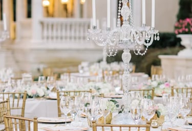 Décor that brings cohesion, clarity, and elevated charm. Vases & Vessels, Candle Holders, Candelabras, Floral Risers, Pillars, Stands, Table Numbers, and Signage.