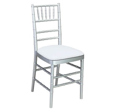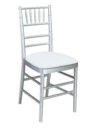 Chair rental includes cushions in ivory, white, black, silver, or gold.