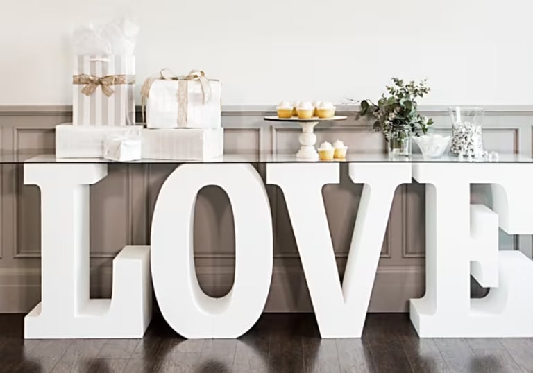 From romantic LOVE sign tables to vintage birdcages, aisle runners, and polished stanchions with velvet ropes, our specialty items add personality, polish, and photo-ready charm!
