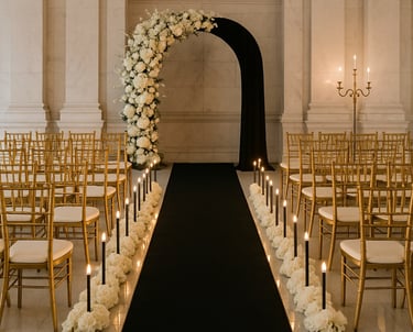 Our curated inventory includes high-end décor, lighting solutions, and statement rental pieces that elevate weddings, social gatherings, and corporate events alike. With full-service support including delivery, installation, room flips, and breakdown, we ensure your event unfolds effortlessly and beautifully.
